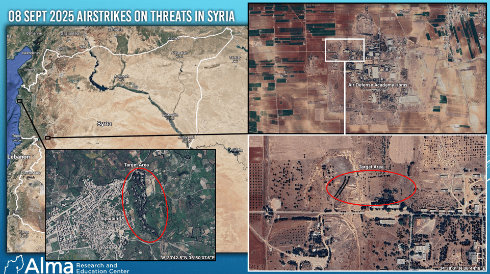 On September 8, an airstrike targeted the former military air defense school base south of Homs. In addition, according to local reports, another strike is believed to have targeted a site in the town of Sqoubin, east of Latakia. According to various reports, the strike south of Homs hit a warehouse (or multiple warehouses) containing Turkish missiles and air defense systems transferred to the site. There has not been verified. In any case, these are advanced weapons systems that posed a threat to Israeli operational freedom. Similar systems may have been targeted east of Latakia as well. The security agreement signed between #Syria and Turkey in August 2025 deepens Turkey’s political-security foothold in Syria and Syria’s dependence on Turkey. The military buildup of the new Syrian army relies heavily on Turkish assistance, including professional training and technical support in both Syria and Turkey’s territories, as well as the transfer of advanced Turkish-made weaponry. From an Israeli perspective, the challenge is twofold: Turkish weapons operated by Turkish soldiers on Syrian soil could be used against Israel, and Turkish influence over the Syrian army could lead to independent Syrian use of these weapons against Israel in the future.