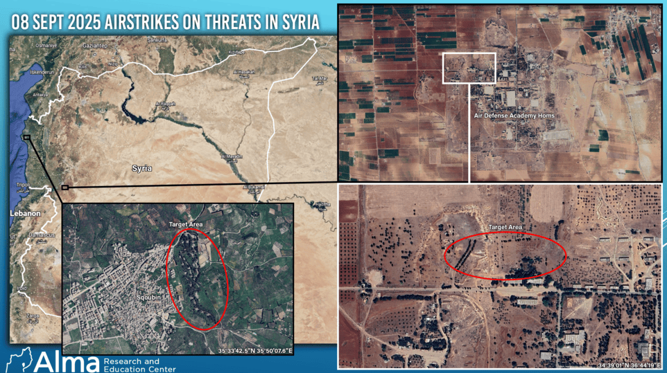 The most worrying component for Israel is the reports of the transfer of advanced Turkish weapons into Syrian territory. On September 8, 2025, an airstrike was apparently aimed at a warehouse (or several warehouses) at the former air defense school base, south of Homs.