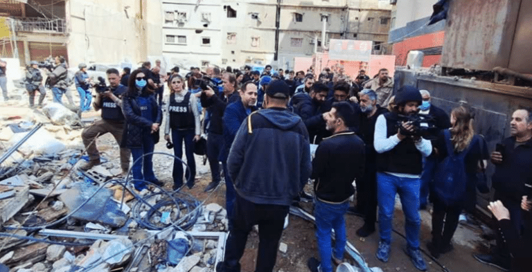 On April 10, Hezbollah organized guided tours for media outlets in areas struck by Israel in the Dahieh district