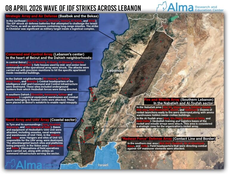 Analysis of the Strike on April 8 Against Hezbollah Targets (Beirut, Southern Lebanon, Bekaa)