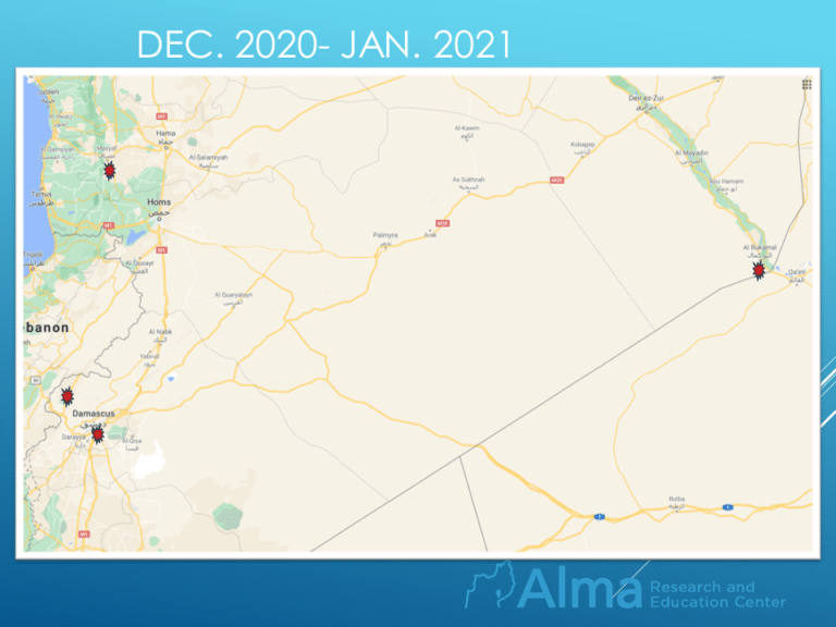In the last three weeks, four airstrikes have been attributed to Israel.Dec. 25, 2020 – Masyaf (northwest Syria)Dec. 30,