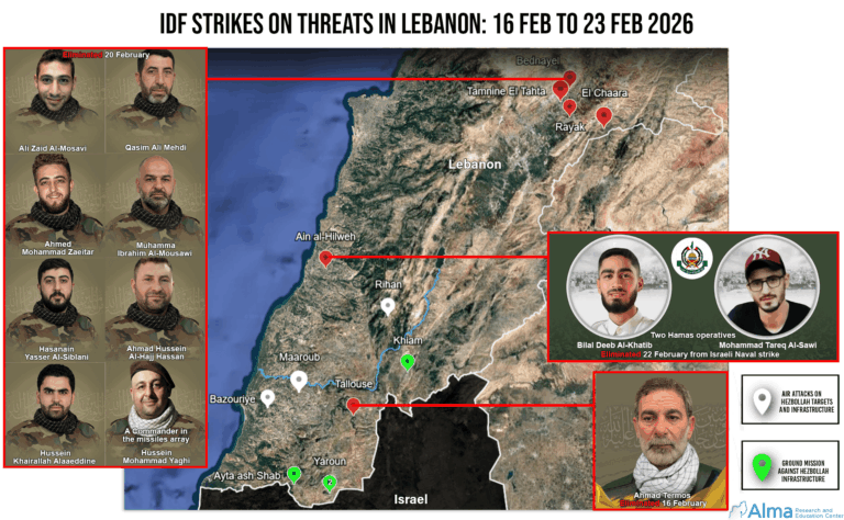 During the week of 16–23 February, nine airstrikes were carried out in Lebanese territory. Four strikes were conducted in