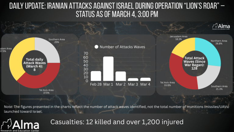 Daily Update: Iranian Attacks Against Israel During the War – Situation Overview as of March 4, 15:00 (Day 5 of the War)