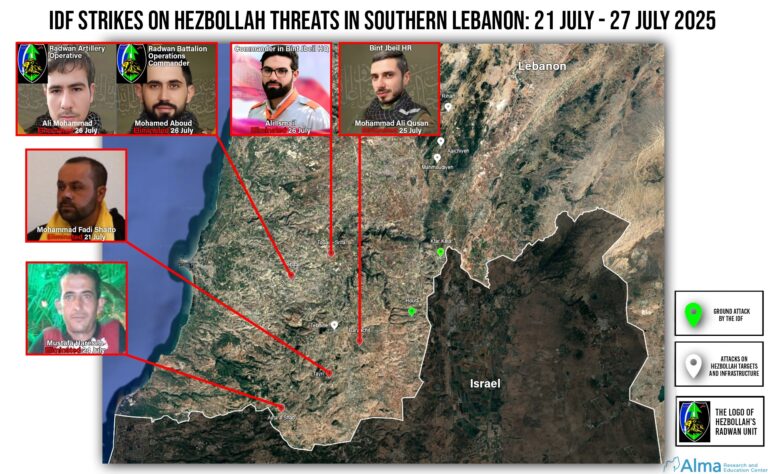 IDF Strikes on Hezbollah Threats in Southern Lebanon – 21-27 July 2025
