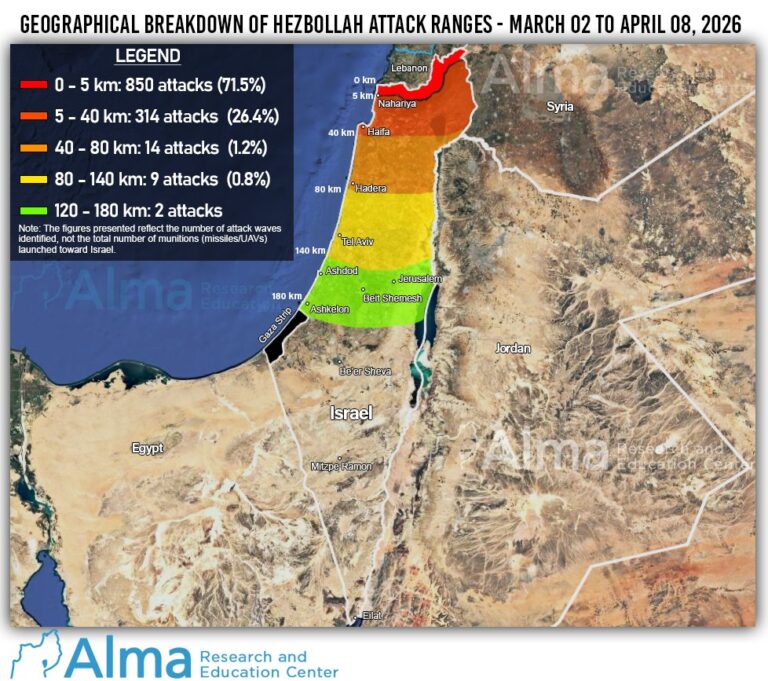 Analysis of Hezbollah’s Firing Range Distribution Toward Israel (March 2 – April 8, 2026)