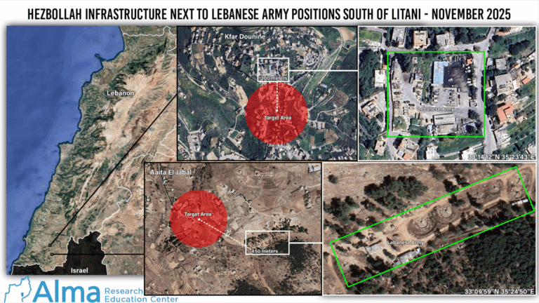 Hezbollah Infrastructure Next to Lebanese Army Positions South of Litani – November 2025
