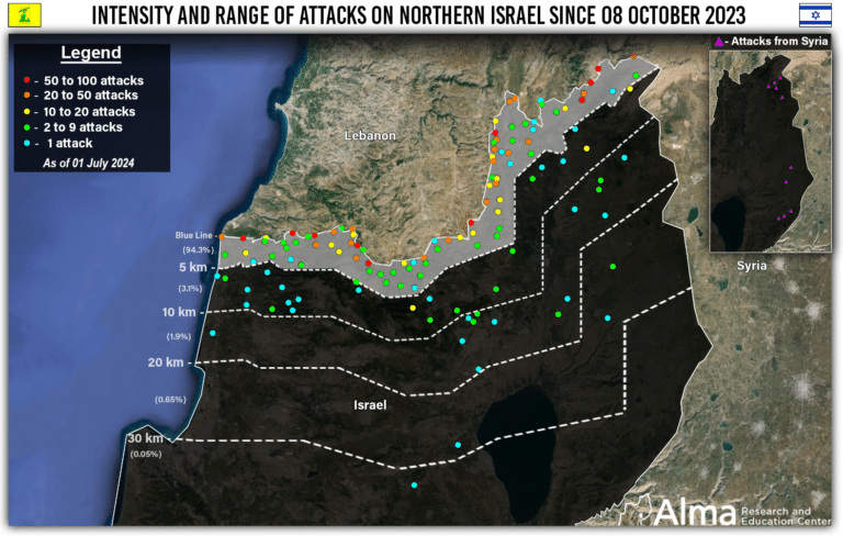 Hezbollah – Intensity and Range Analysis of Attacks Against Israel (October 8, 2023, to July 1, 2024)