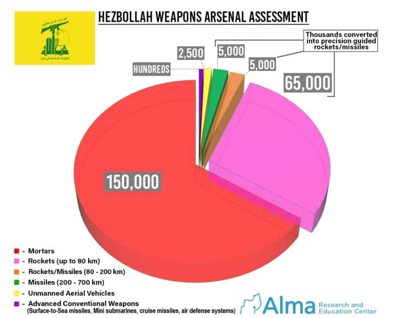 Hezbollah’s weapons arsenal – assessment update: We are updating our estimate of the number of rockets and precision missiles