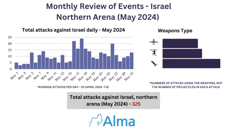 May 2024 is the month with the highest intensity of Hezbollah attacks against Israel since October 2023. Throughout May