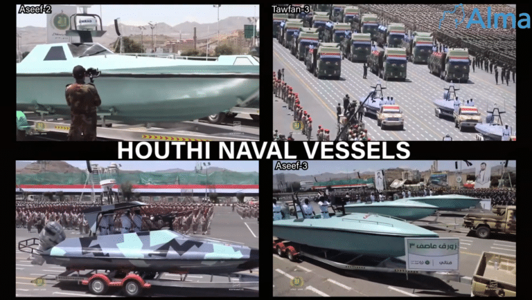 Photo: Three different kinds of fast attack vessels in Houthi possession, as displayed in their military parade in Saana,