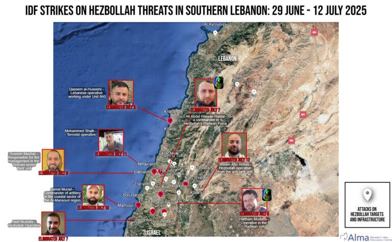IDF Strikes on Hezbollah Threats in Southern Lebanon: 29 June – 12 July 2025