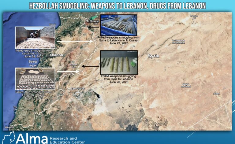 Hezbollah’s smuggling highway on the Syria-Lebanon border continues. Hezbollah’s smuggling routes from Syria to Lebanon primarily involve weapons. On