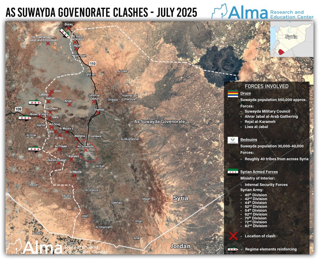 •The regime forces deployed to As-Suwayda came from at least nine different divisions, some with a distinctly jihadist orientation, as well as Internal Security Forces.