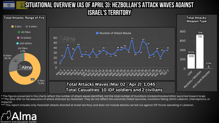 Hezbollah Attacks Against Israeli Territory (as of April 3)