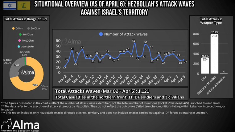 Hezbollah Attacks Against Israel (as of April 6)