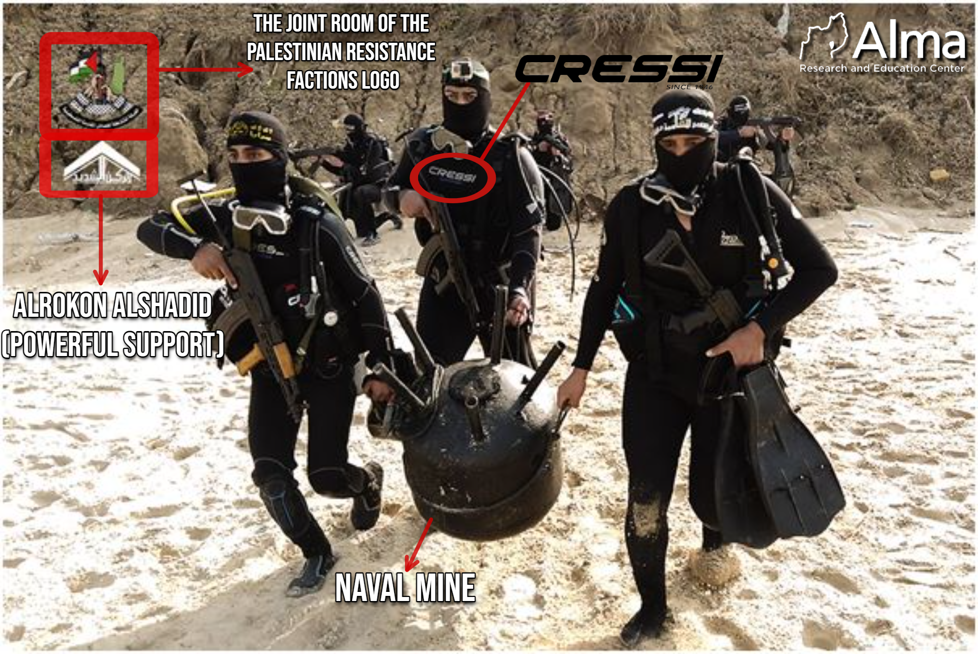 Similar to Hezbollah’s naval unit, also in the Gaza Strip the operatives of the naval unit practice using naval mines. The diving equipment includes the best Western equipment (in the picture, equipment from the Italian Cressi company).