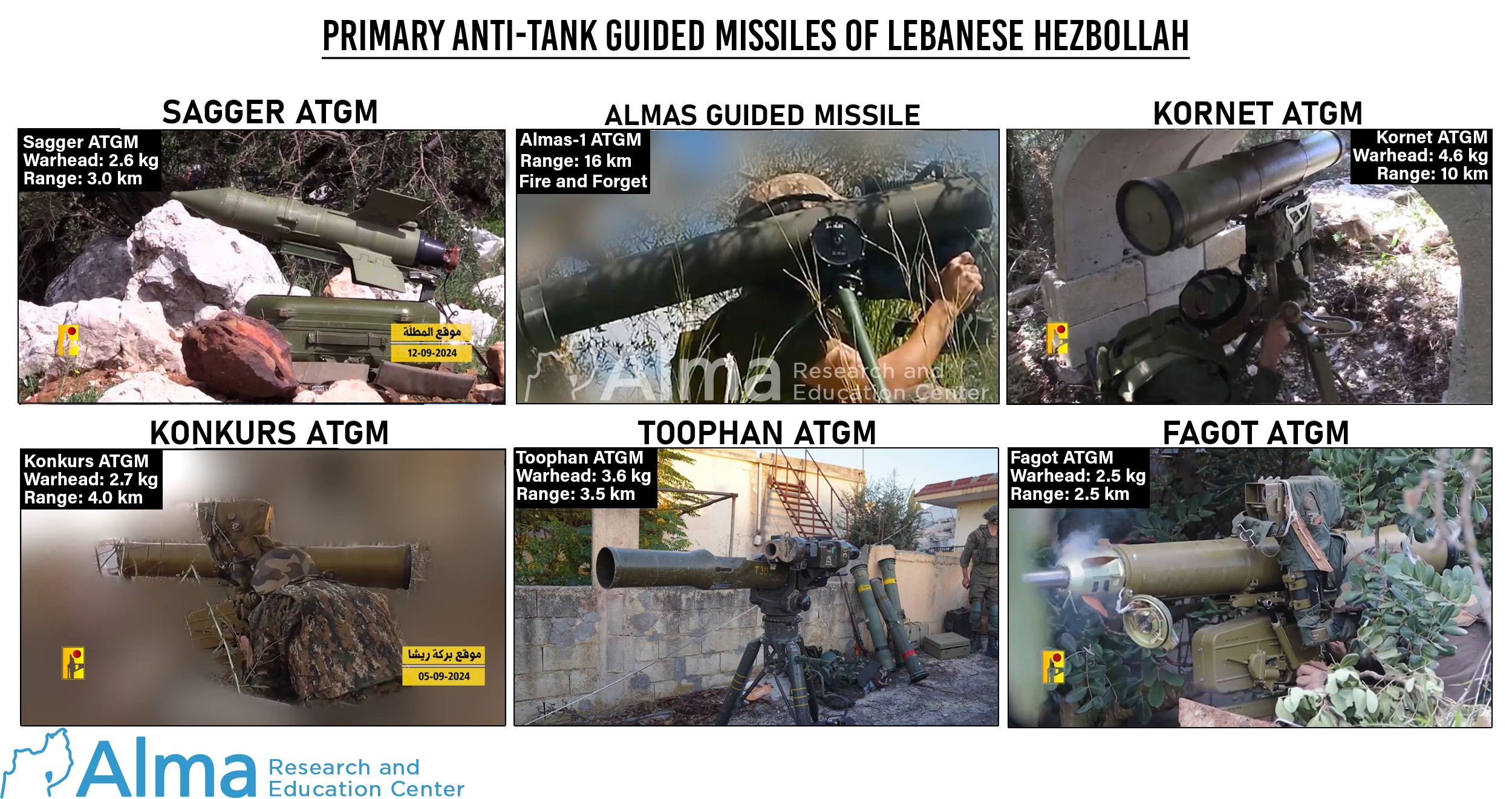 Below is a breakdown of the anti-tank missiles in Hezbollah’s arsenal (in addition to RPG rockets):