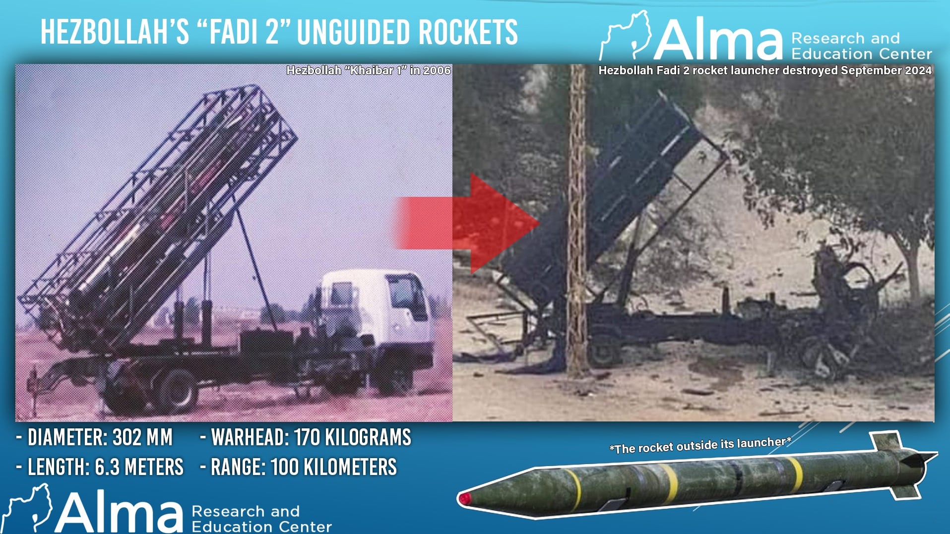 Below is a breakdown of the main types of rockets and missiles that, according to our assessment, are currently in Hezbollah’s arsenal: