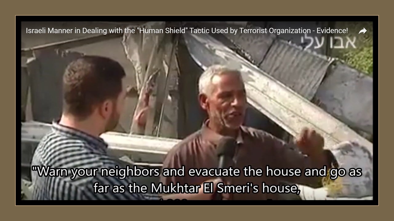 The Gazan describes the chain of events and without intending it his testimony serves as an authentic defense argument and justification for the IDF’s unique method of action against the “human shield” tactic used by terrorist organizations.