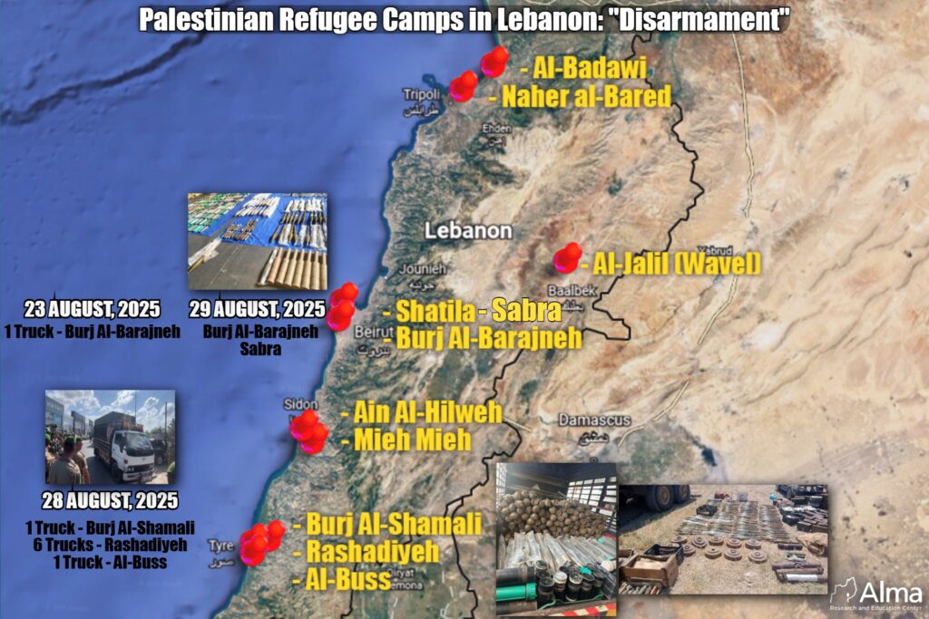 In the past week, the Lebanese Army, through its second intervention battalion, in collaboration with internal security forces and the Guidance Directorate, began confiscating weapons belonging to the Fatah movement from several Palestinian refugee camps in the Beirut and Tyre areas. The weapons seizure was accompanied by a well-publicized media campaign. So far, we have identified around 10 small trucks loaded with various types of weapons, including rifles, machine guns, grenades, mortar shells, anti-tank mines, and RPGs. The weapons were taken to Lebanese Army bases. This is indeed a precedent-setting move. However, in fact, the number of weapons collected so far is marginal compared to the reality that “every house in the camps has weapons” of all types. Additionally, the army’s enforcement capabilities in these camps are limited, and there are also significant quantities of weapons held by Hamas, Islamic Jihad, Salafi organizations, criminal elements, and arms smugglers, who are not part of the Palestinian disarmament agreement.
