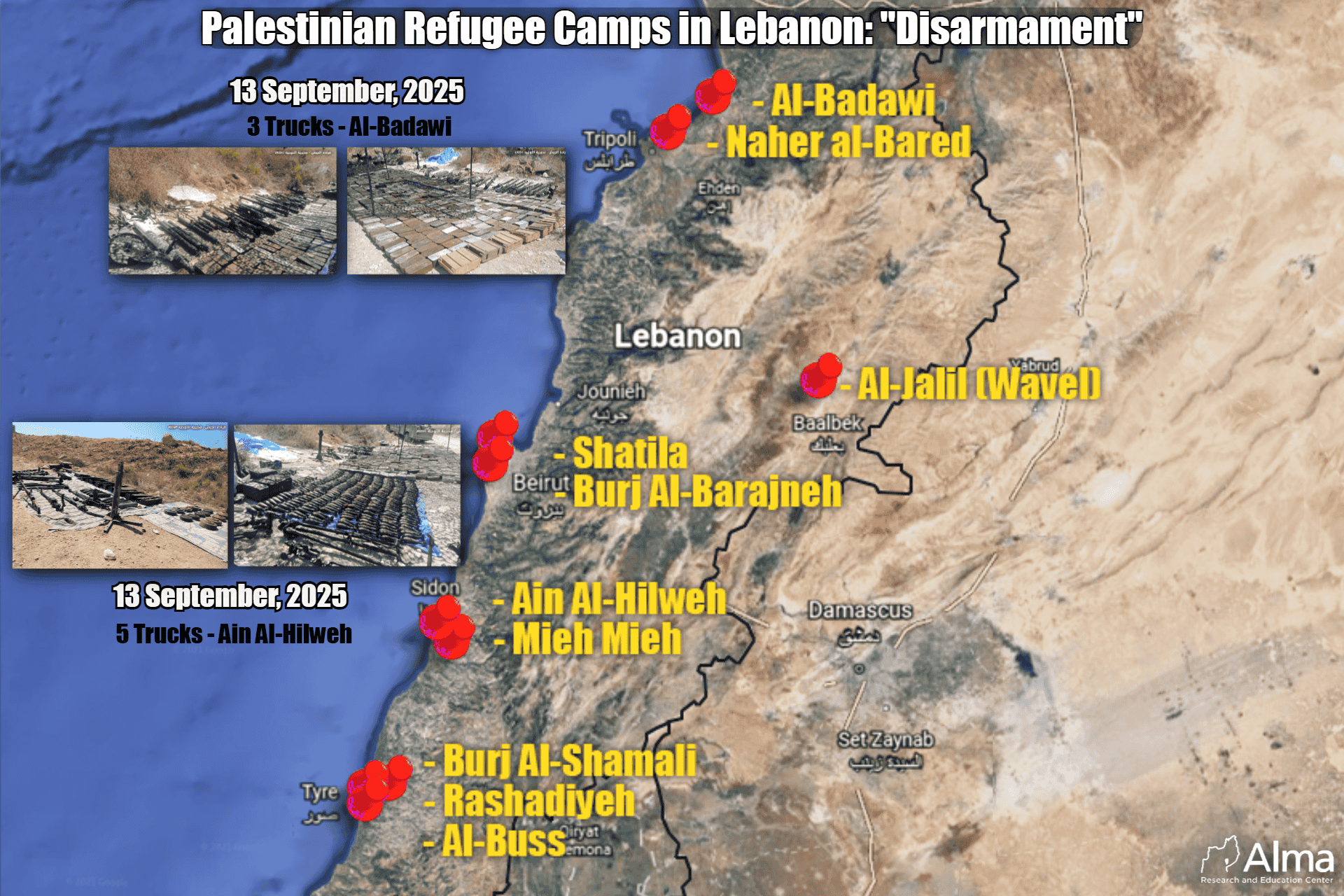The “disarmament of Palestinians” initiative continues in Lebanon, as does the public campaign, but the results on the ground are less impressive. On September 13, the Lebanese army announced that it had completed the fourth stage of the program to collect weapons from the Palestinian refugee camps, during which three truckloads of weapons were collected from the al-Beddawi camp in the north and five additional truckloads from the Ain al-Hilweh camp in the south. Among the weapons handed over were anti-aircraft weapons, medium weapons, mines, and various types of ammunition.