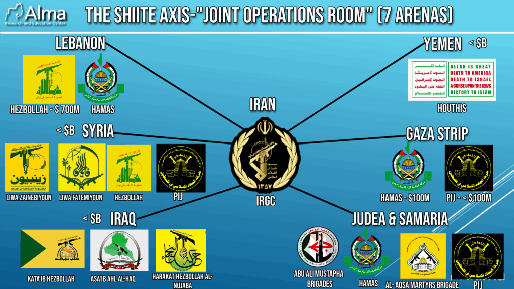 The main idea that guided the Shiite axis led by Iran is the ‘Unity of Arenas.’ This doctrine posits that Israel must be attacked by air, sea, and land, from several fronts simultaneously, using Iran’s various proxies (Hezbollah in Lebanon, militias in Syria and Iraq, the Houthis in Yemen, and of course Hamas and the Palestinian Islamic Jihad in the Gaza Strip and Judea and Samaria), with the aim of exhausting it, splitting its forces, and ultimately bringing about its collapse.