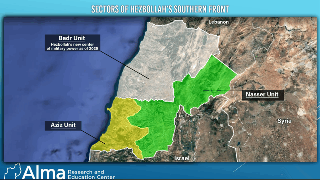 The organization’s geographic center of gravity on the southern front has shifted north of the Litani — to the Badr Unit sector.