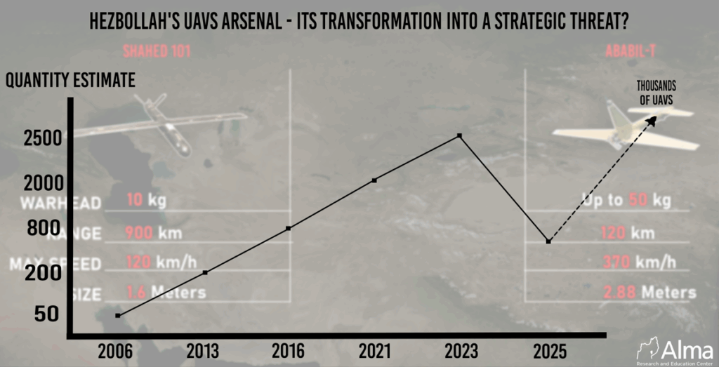 Hezbollah is advancing an intensification of its UAV and loitering-munition array as a central effort for the future confrontation.