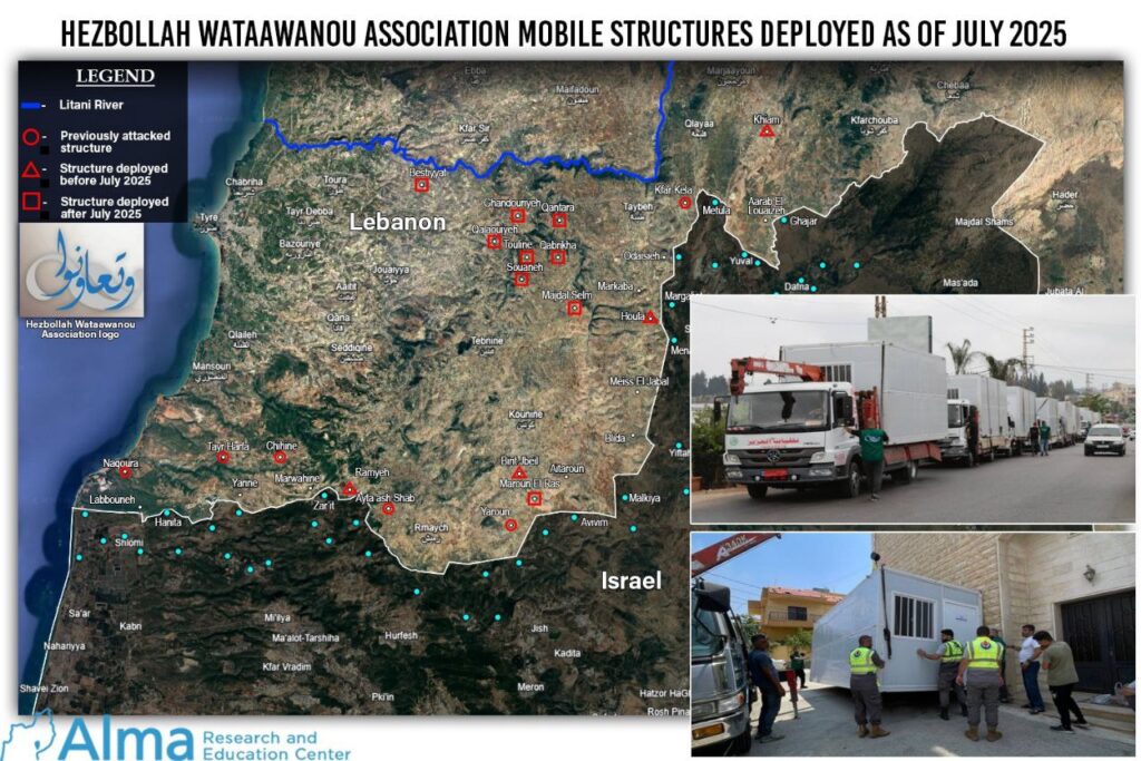 The campaign to place mobile buildings across southern Lebanon during the ceasefire, conducted by the “Wataawanou” Association, also aims to embed and conceal Hezbollah’s military activity and intelligence collection in southern Lebanon and along the contact line. It is no coincidence that some of these mobile buildings were targeted in recent months.