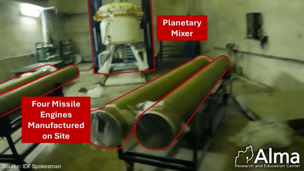 Even before the outbreak of the war in October 2023, as part of the Iranian desire to streamline missile production processes and shorten logistical ranges, planetary mixers were transferred to Syrian soil (Institute 4000 at CERS) and into the hands of Hezbollah in Lebanon.