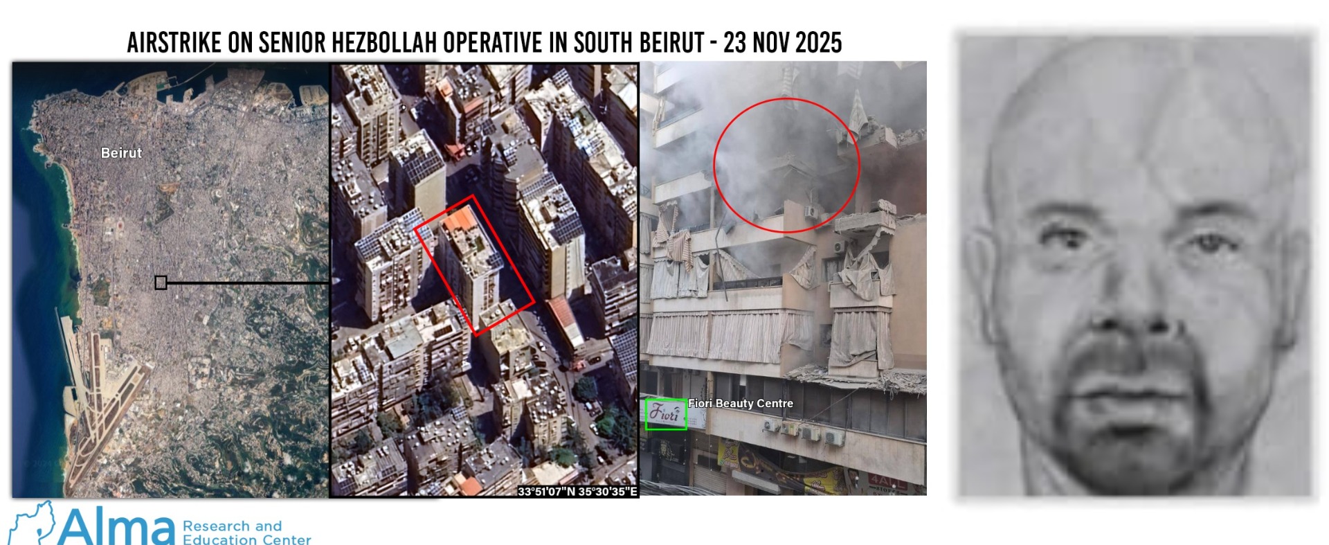 From a comparison we conducted at the time between the face of the man in the ceremony and the face of Tabataba’i in the composite sketch published by the Americans in 2016 (to which we added a beret for the purpose of comparison), it was difficult to ignore the strong resemblance between them. We assessed then that it was possible the man was Tabataba’i (who may have been the Radwan commander at the time), and we even published this assessment on June 2, 2023.