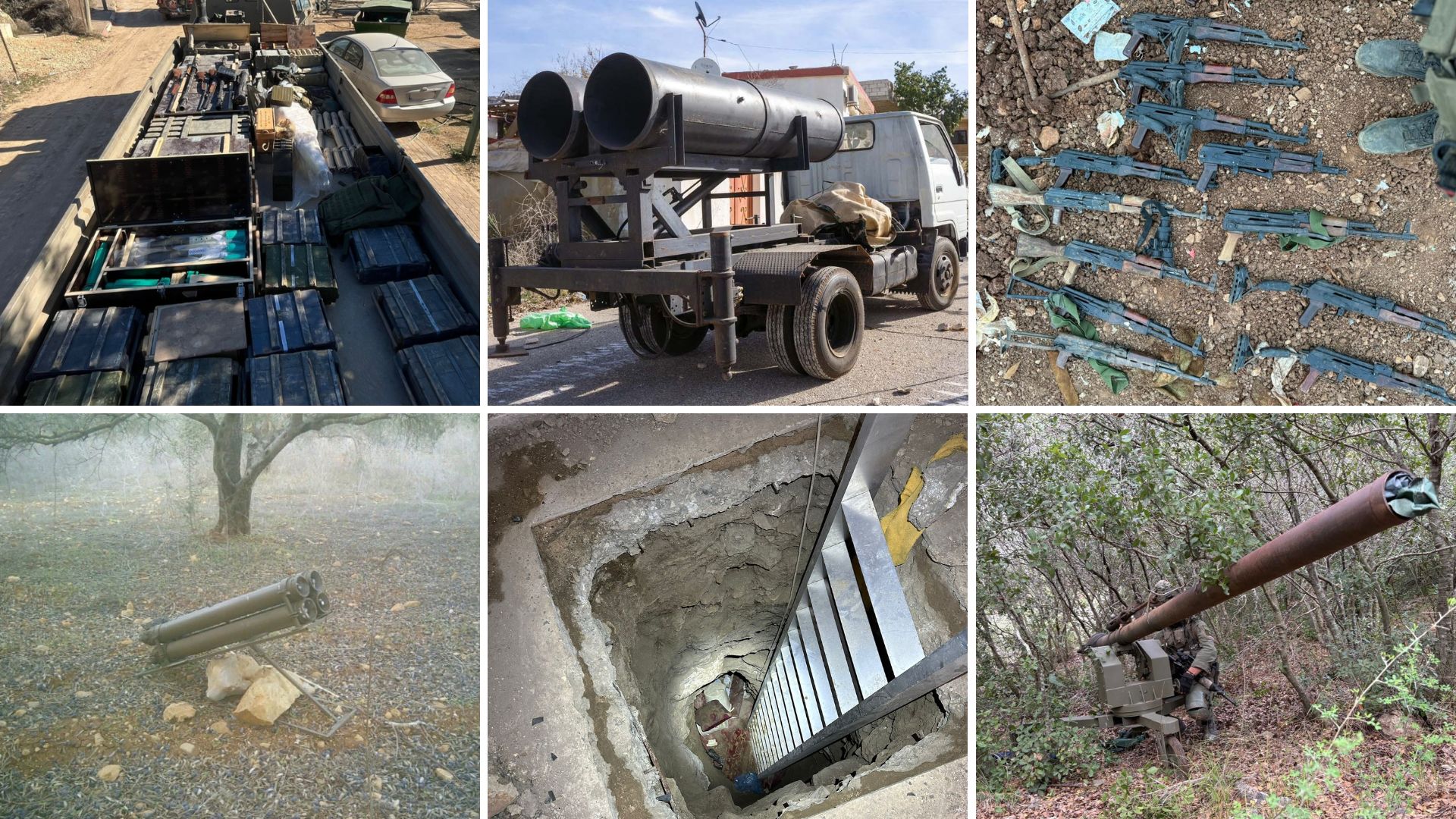 Above: Weapons and an underground shaft located by IDF forces in southern Lebanon during the past week
