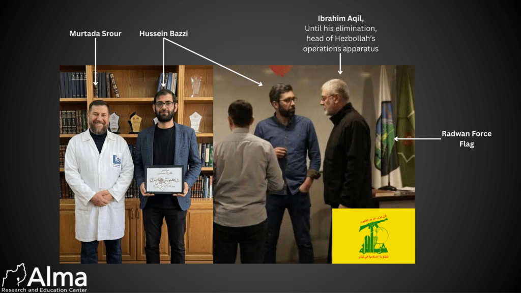 It was not by chance that Hussein Bazzi was seen together with Ibrahim Aqil (who, until his elimination on September 20, 2024, served as a member of the Jihad Council and commander of Hezbollah’s operations array responsible for the Radwan Unit, and following the elimination of Fuad Shukr on July 30, 2024, assumed his role as commander of the military wing).