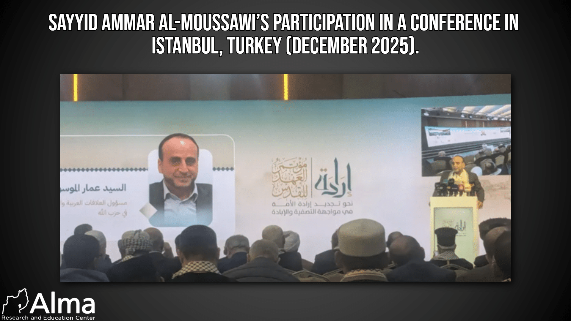 While Turkey, as a NATO member state, serves as a base for transferring money for Hezbollah (as well as Hamas), senior Hezbollah operatives also take part in official and open conferences on its soil. On 7 December it was reported that Sayyid Ammar al-Moussawi, head of Hezbollah’s Arab and international relations department, participated as the head of a delegation of the organization in a conference held in Istanbul on the subject of “Palestine.” Ammar al-Moussawi (عمار الموسوي) was born in 1962. His brother, Jamil al-Moussawi, was killed in 1988 in a battle against the IDF. Al-Moussawi previously served as a member of parliament on behalf of the organization’s bloc as the representative of the Beqaa.